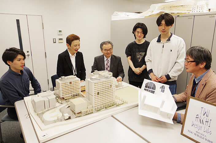 学内に設置されている一般社団法人TDU一級建築設計事務所や学外企業がインターンシップ先。本学教員のもとで、設計や耐震調査を実践することで、一級建築士資格の 取得に必要な実務経験として認定されます。​​
