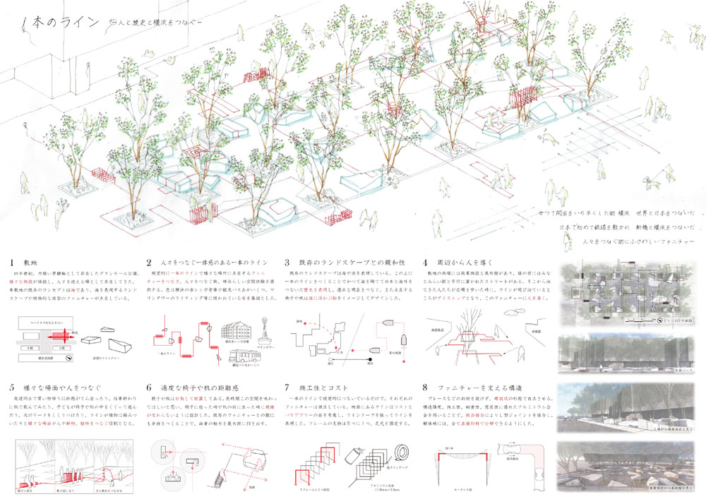 このコンペは、グランモール公園を楽しくするストリートファニチャー(屋外装置物の総称)がテーマです。