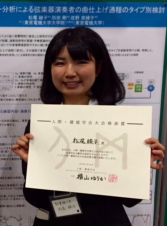 2016.06.07松尾綾子さん(博士課程)が人間・環境学会大会発表賞を受賞