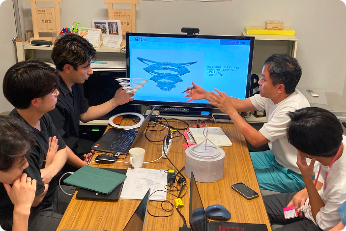 Rhinoceros・Grasshopperといったデジタルなツールの習得・活用を目的としたスタジオです。大学施設「ものづくりセンター」を利用しながら実物大の製作を行います。